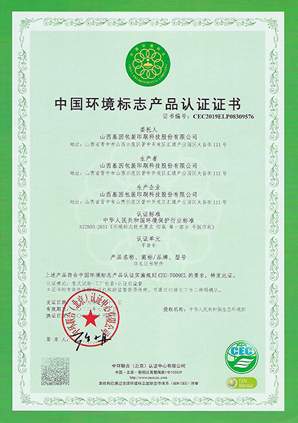 • 綠色認證證書